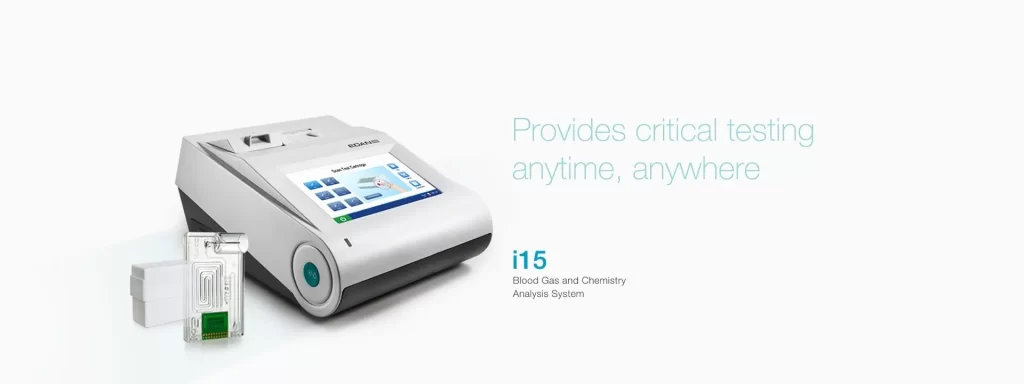 نستخدم في المركز الطبي لمركز الفصادة في مركز الفصادة الطبي نظام EDAN i15 الجديد لتحليل غازات الدم والكيمياء.