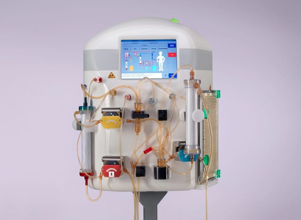 - يتم سحب الدم من الوريد وتمريره عبر نظام ترشيح متطور.